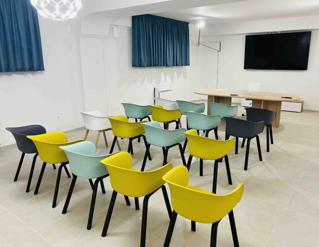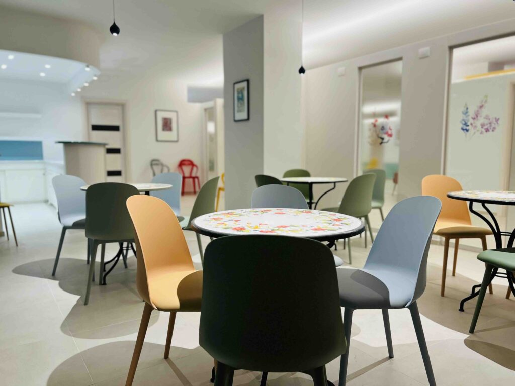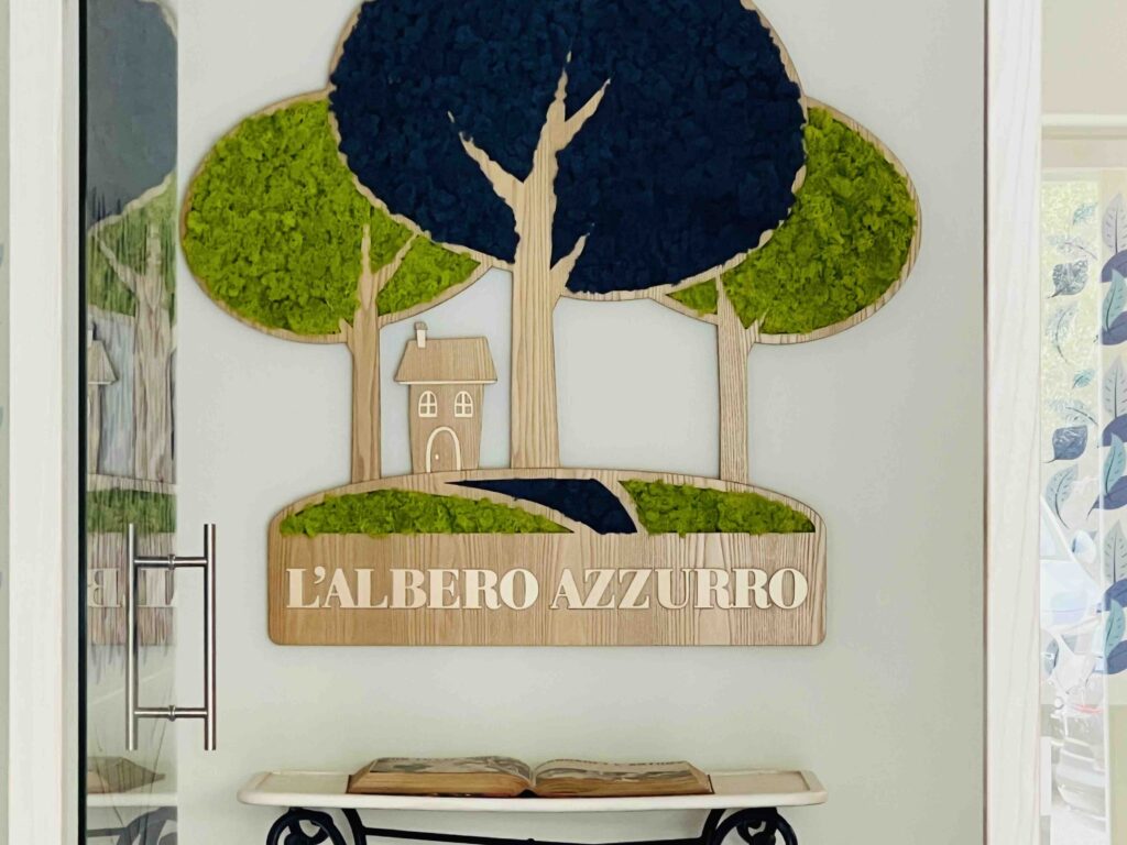 L’Albero Azzurro trova collocazione in via Fancello, ed è costituito da 20 locali ben distinti, al fine di poter distribuire in sottogruppi gli utenti.